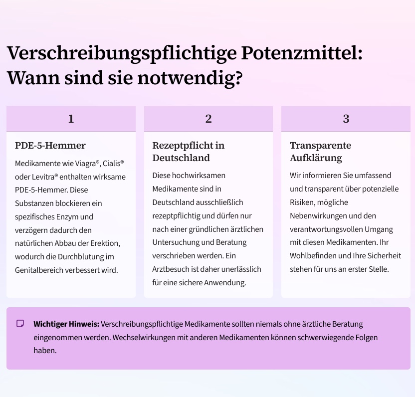 Rzeptfreie Potenzmittel unterstützen Sie dabei, intensive Empfindungen zurückzugewinnen, Ihre männliche Kraft wiederherzustellen und die Intimität ohne Angst vor Versagen zu genießen. Die Hauptsache ist, sich für bewährte Potenzmittel mit echten Erfolgen zu entscheiden und nicht für fragwürdige Fälschungen.